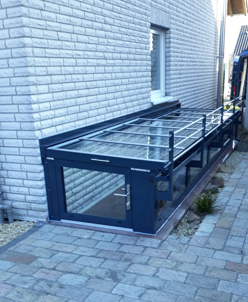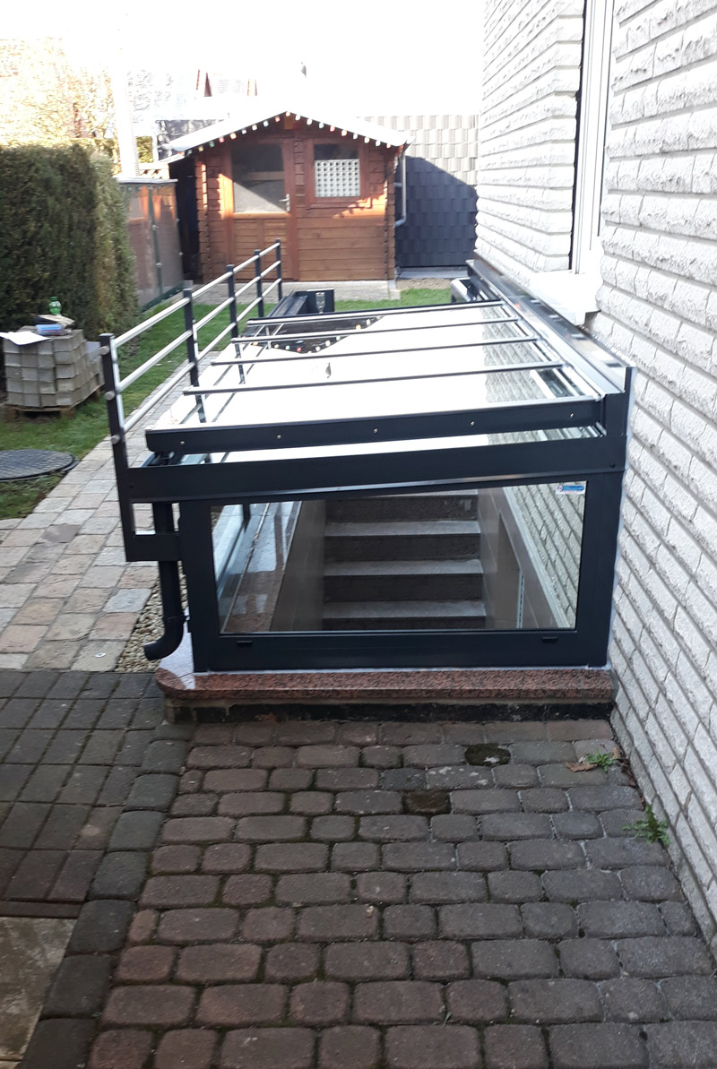 Die S+N Überdachung Ihres Kellerabgangs schützt vor Wind und Wetter, Regen und Schnee. Schmutz und Feuchtigkeit bleiben draußen, die Wärme drin. Und obendrein schrecken die abschließbaren Anlagen Einbrecher ab.